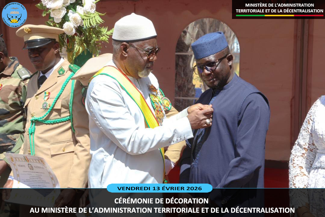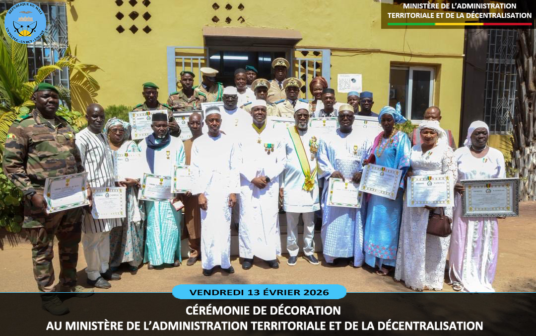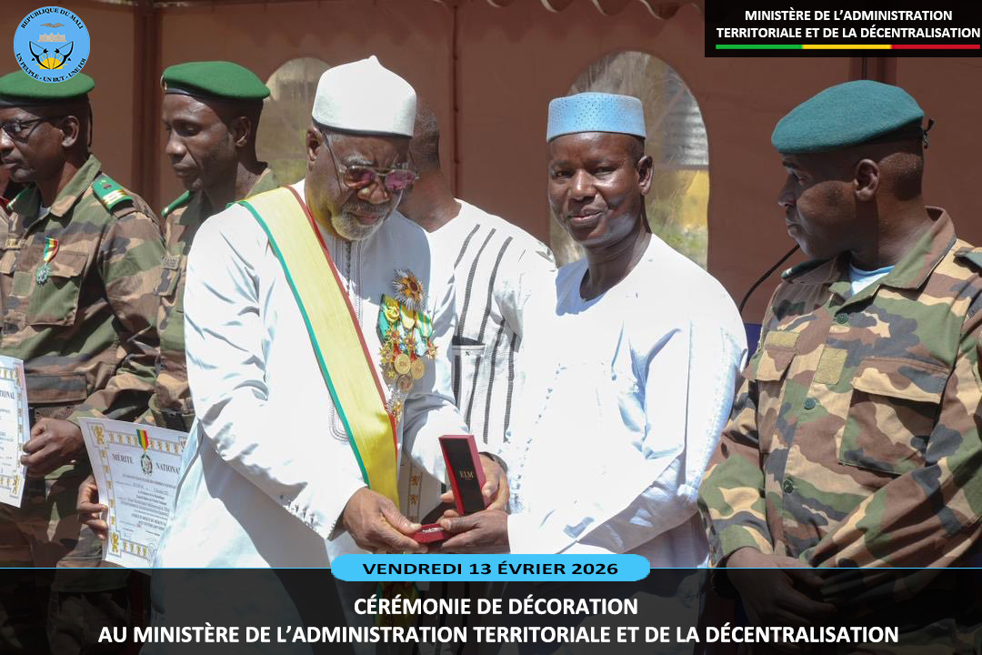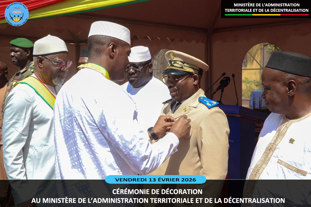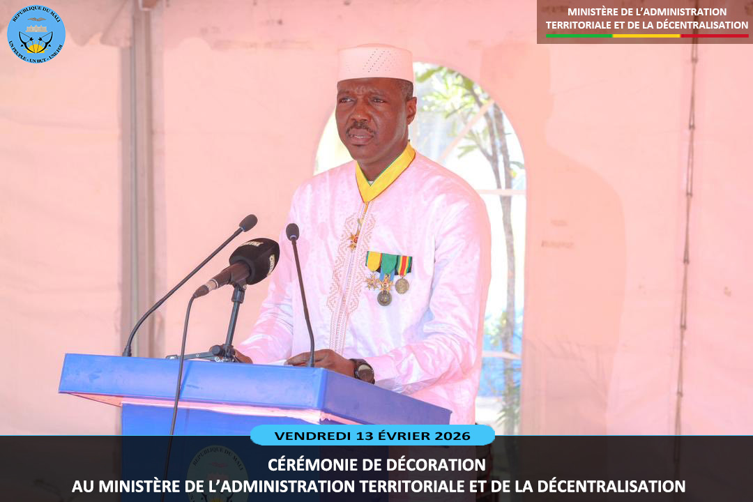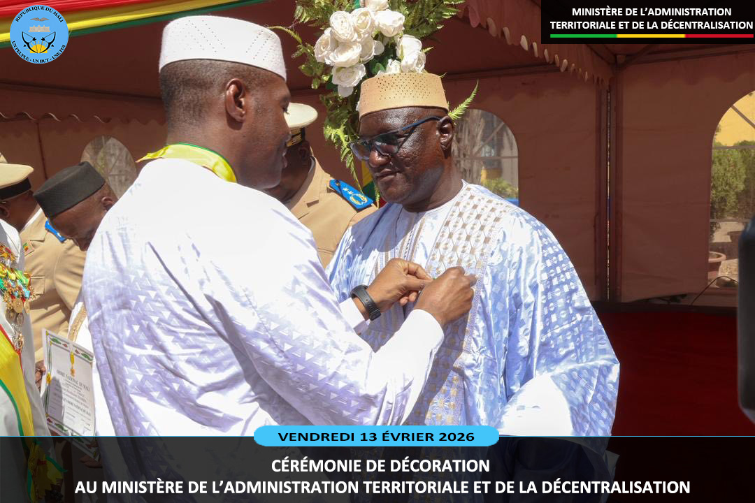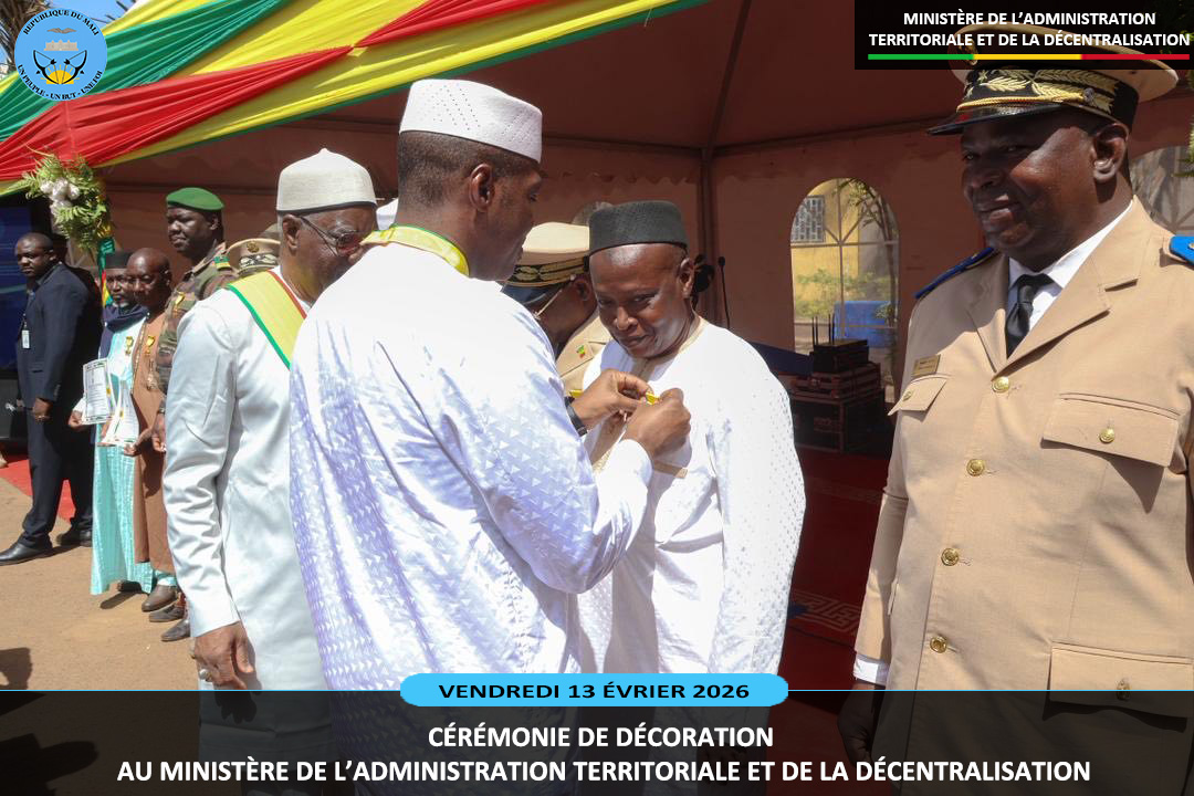 Le ministre sortant de l'Administration Territoriale et de la Décentralisation, le Général de Division Abdoulaye MAIGA a présidé ce vendredi 13 février 2026, au ministère de l'Administration Territoriale deux cérémonies pleines de reconnaissance. Il s'agit de la remise de la médaille de Chevalier de l'Ordre National à dix (10) agents et la médaille...