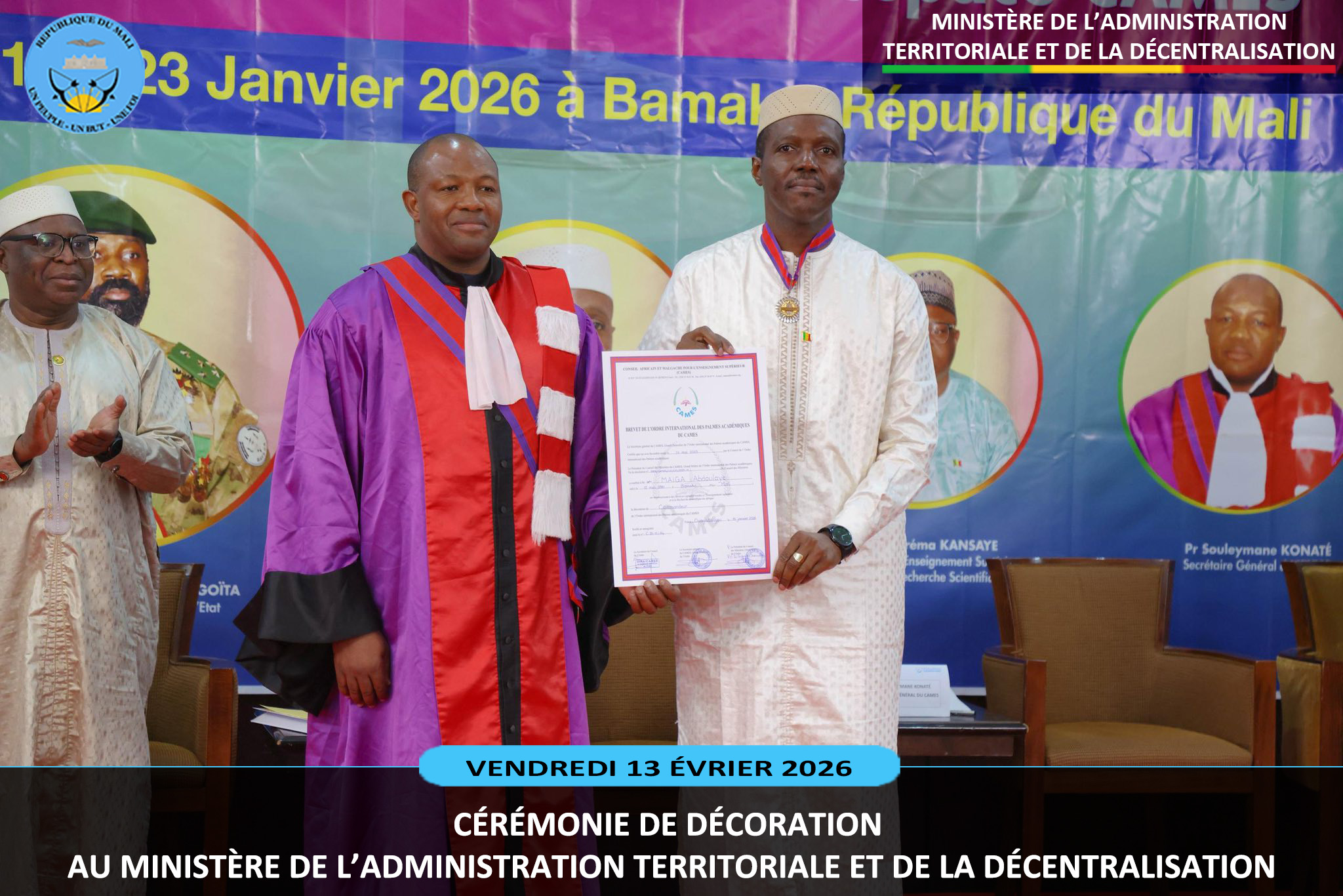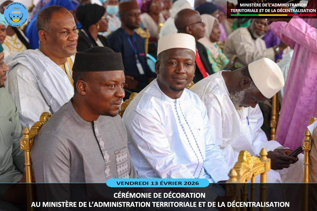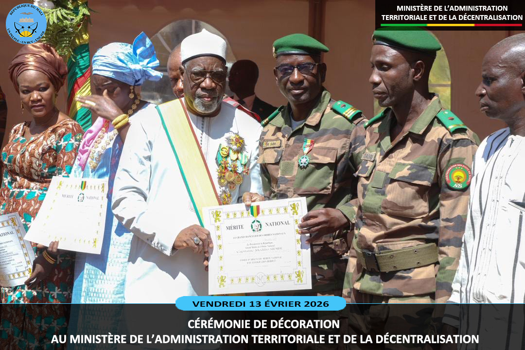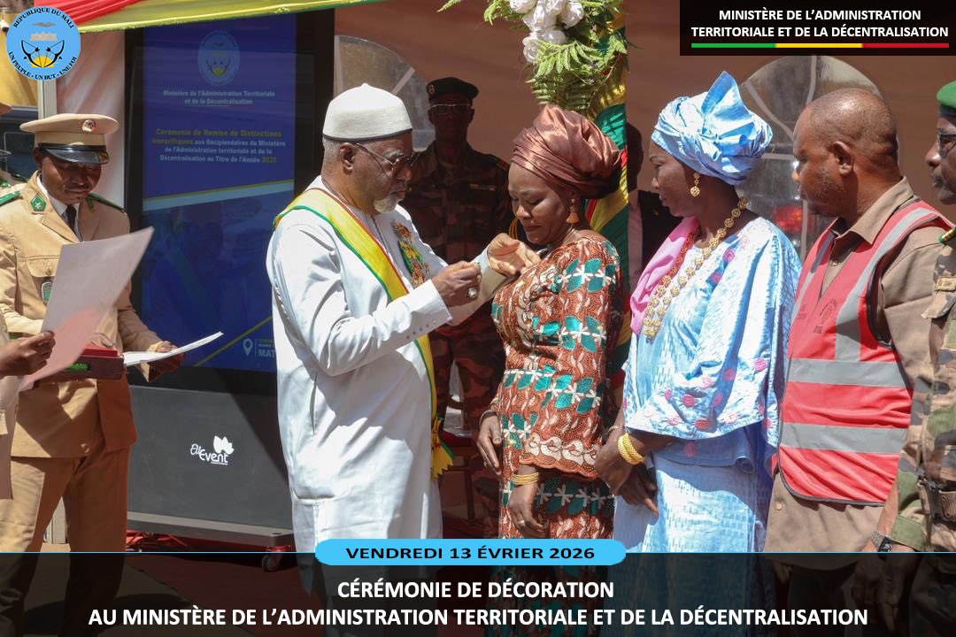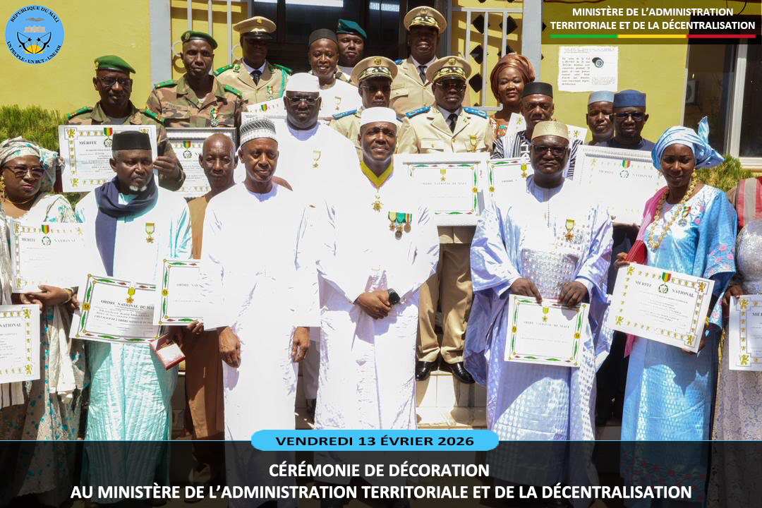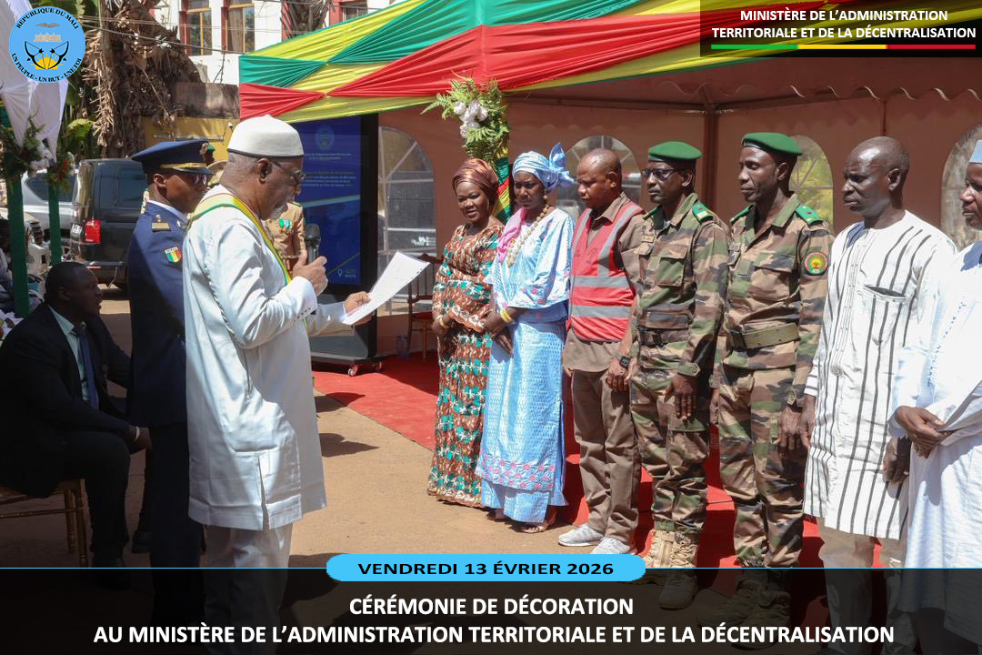 Le ministre sortant de l'Administration Territoriale et de la Décentralisation, le Général de Division Abdoulaye MAIGA a présidé ce vendredi 13 février 2026, au ministère de l'Administration Territoriale deux cérémonies pleines de reconnaissance. Il s'agit de la remise de la médaille de Chevalier de l'Ordre National à dix (10) agents et la médaille...